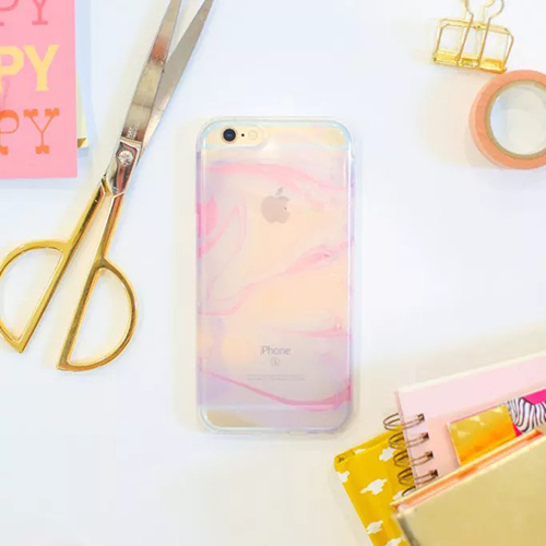 01 Marbleize a Clear Case DIY phone cases Have you ever tried to marbelize your nails? This DIY project is much easier to recreate without a huge mess. To make this phone case, drop nail polish in a bowl of water and swirl. When the marbling on the surface of the water is to your liking, dip the case. For best results, use three complimentary nail polish shades.