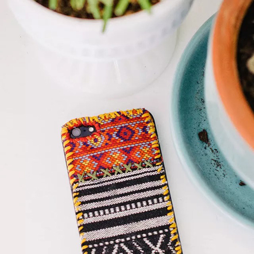 04 Cover Your Phone With a Bohemian Tapestry DIY tapestry phone case All day texting can be hard on the hands when your phone case is hard and has blunt edges. This DIY case adds a soft and thick piece of tapestry to the back, which will make the phone much more comfortable to hold.
