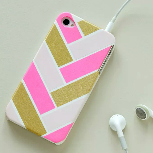 03 Add Bold Patterns With Washi Tape DIY washi tape phone case For a bold and contemporary phone case, add some geometric details. To do this as simply as possible, use tape. Washi tape is still a popular way to add fun details to craft projects relatively inexpensively. To recreate this look, head to your local craft store and pick up three different colors or patterns. If you're having trouble, look at color palettes online to get inspired.