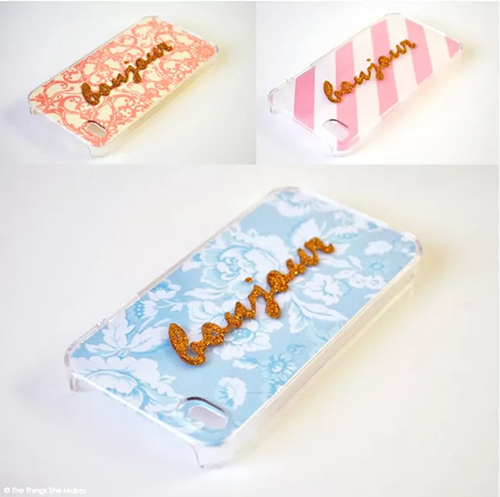 05 Add Some Glitter DIY glitter phone case If you're one of the many that ordered a rose gold iPhone, you may have experienced the upsetting feeling when you realized the metallic backing would be covered up by your case. Many people opted to either leave their phone caseless or purchase a clear case instead. Clear cases lack personality, so this DIY works to show off the color of your smartphone but also adds some glitz into the mix.