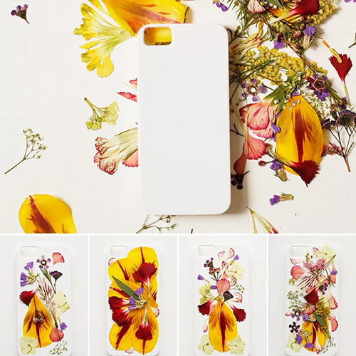 09 Experiment With Pressed Flowers DIY Phone case with pressed flowers Pressed flowers are used to make an array of craft projects, but did you ever think to use them as a focal point on your smartphone? Some pressed flower cases protect the petals by gluing them to the inside of a clear phone case. This project uses an opaque white case instead, which really makes the petals pop. The exterior is hardened using a resin mixture.