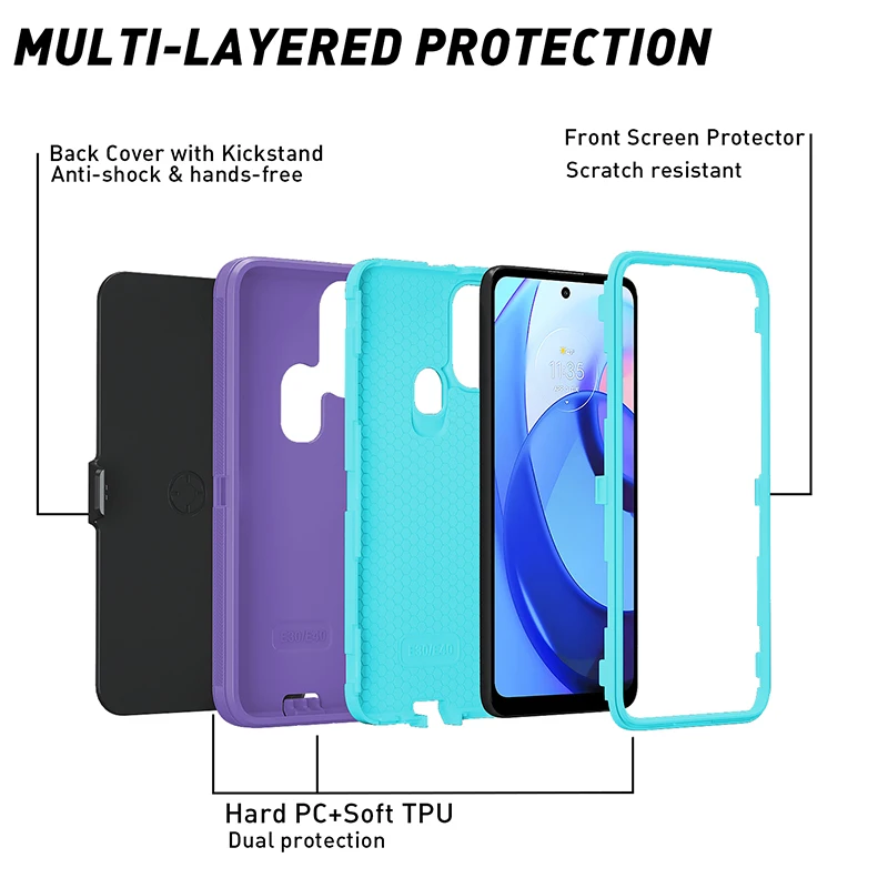 Product Name : | Defender Otterboxer Case 3 in 1 Hard PC+Soft TPU Phone Case Shockproof Screen Protector Phone Case For Moto E30 E40 |