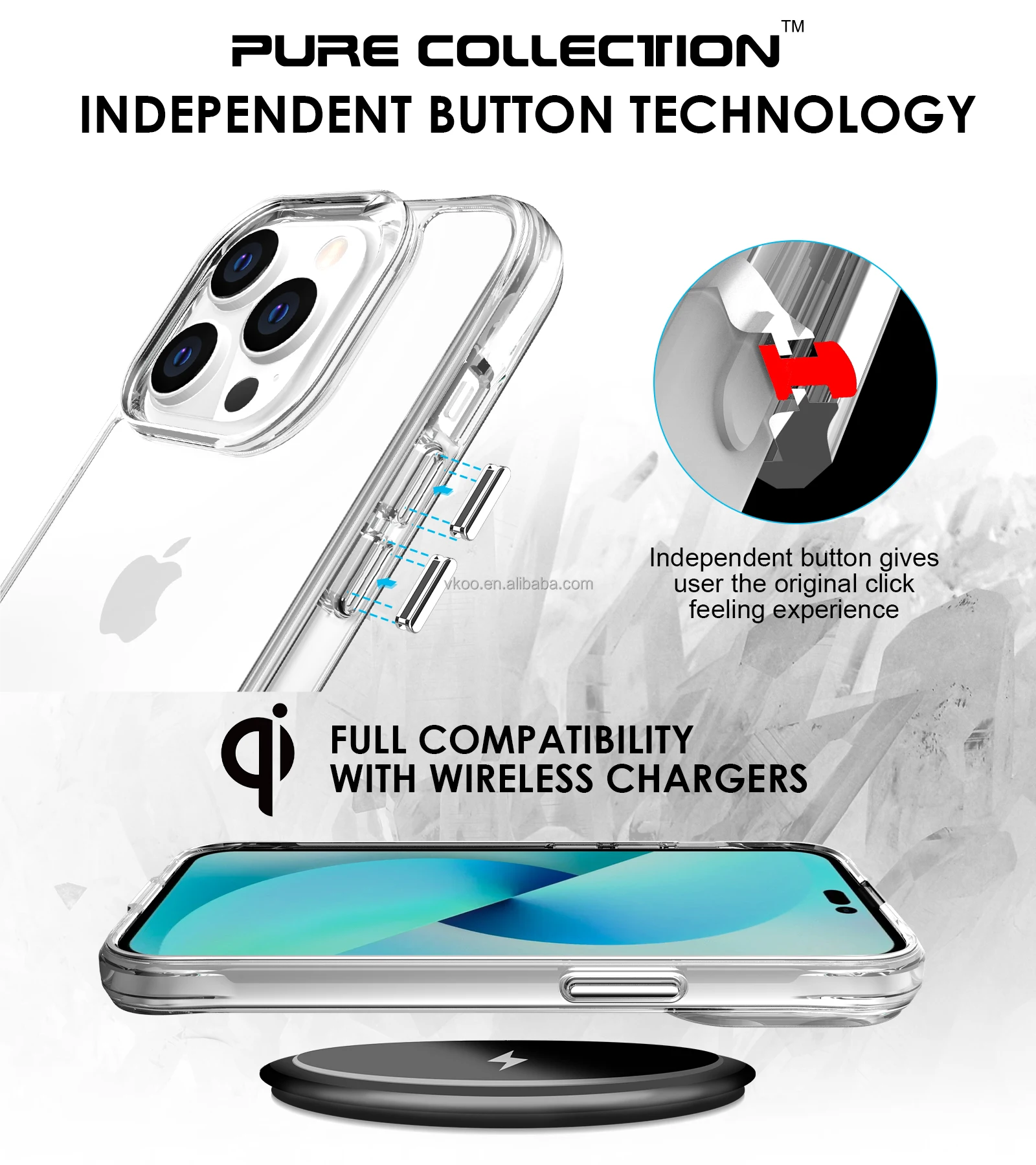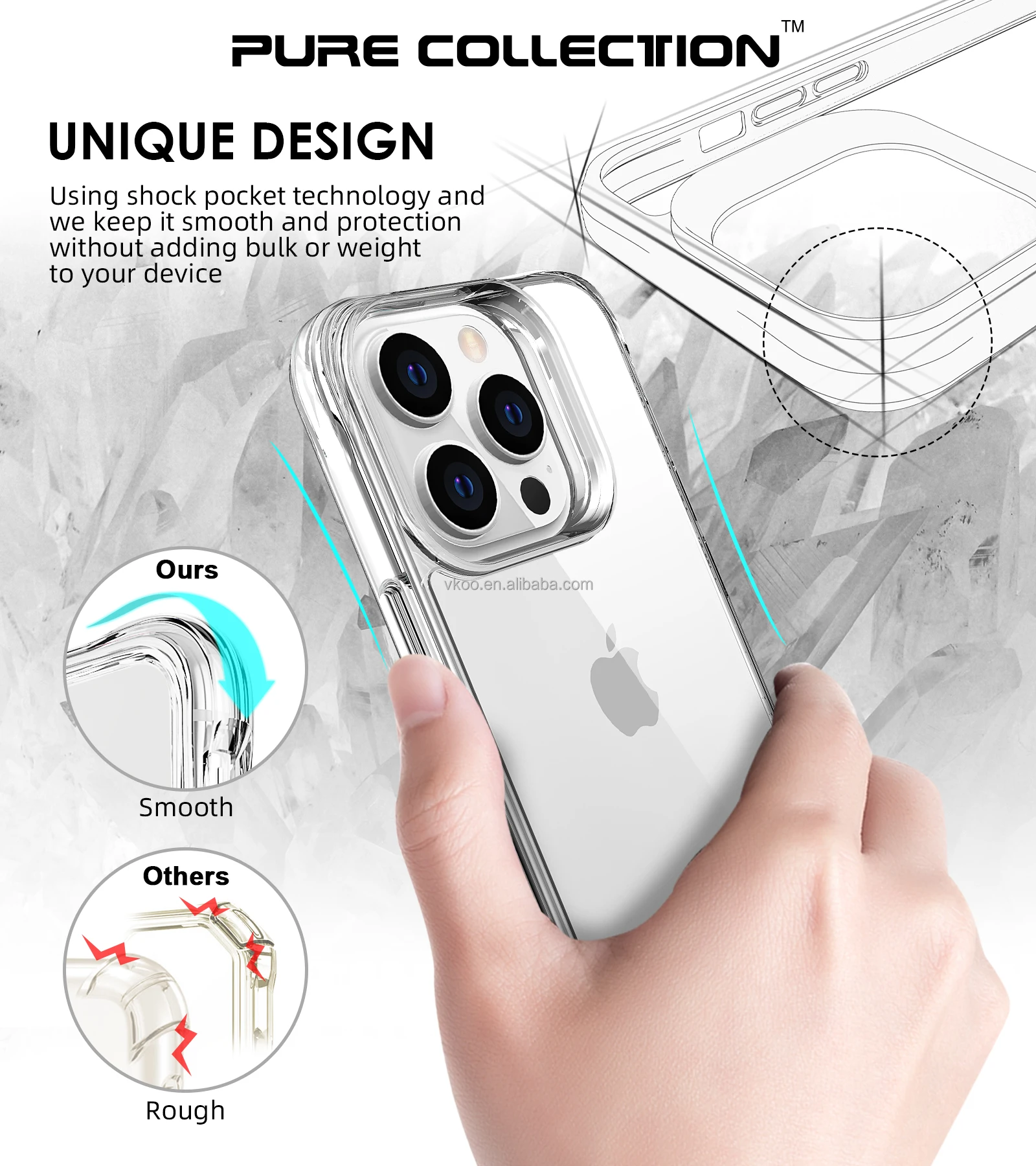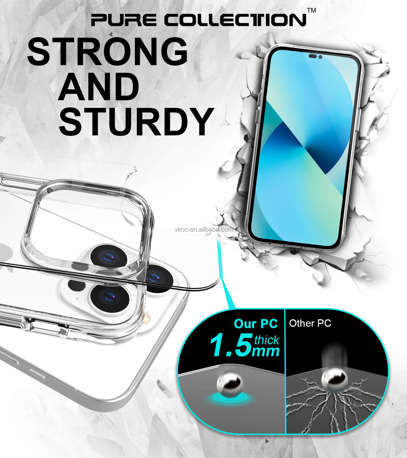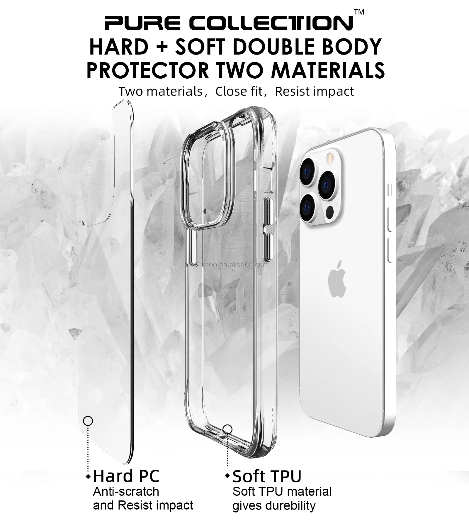 Vkoo Best Selling Wholesale Pure Collection Phone Case For iPhone 14 Pro Max 13 Clear Mobile Phone Case Accessories For iPhone